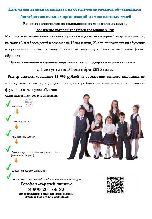 C 1 августа начался приём заявлений на единовременную выплату на школьную или спортивную форму детям из многодетных семей.
