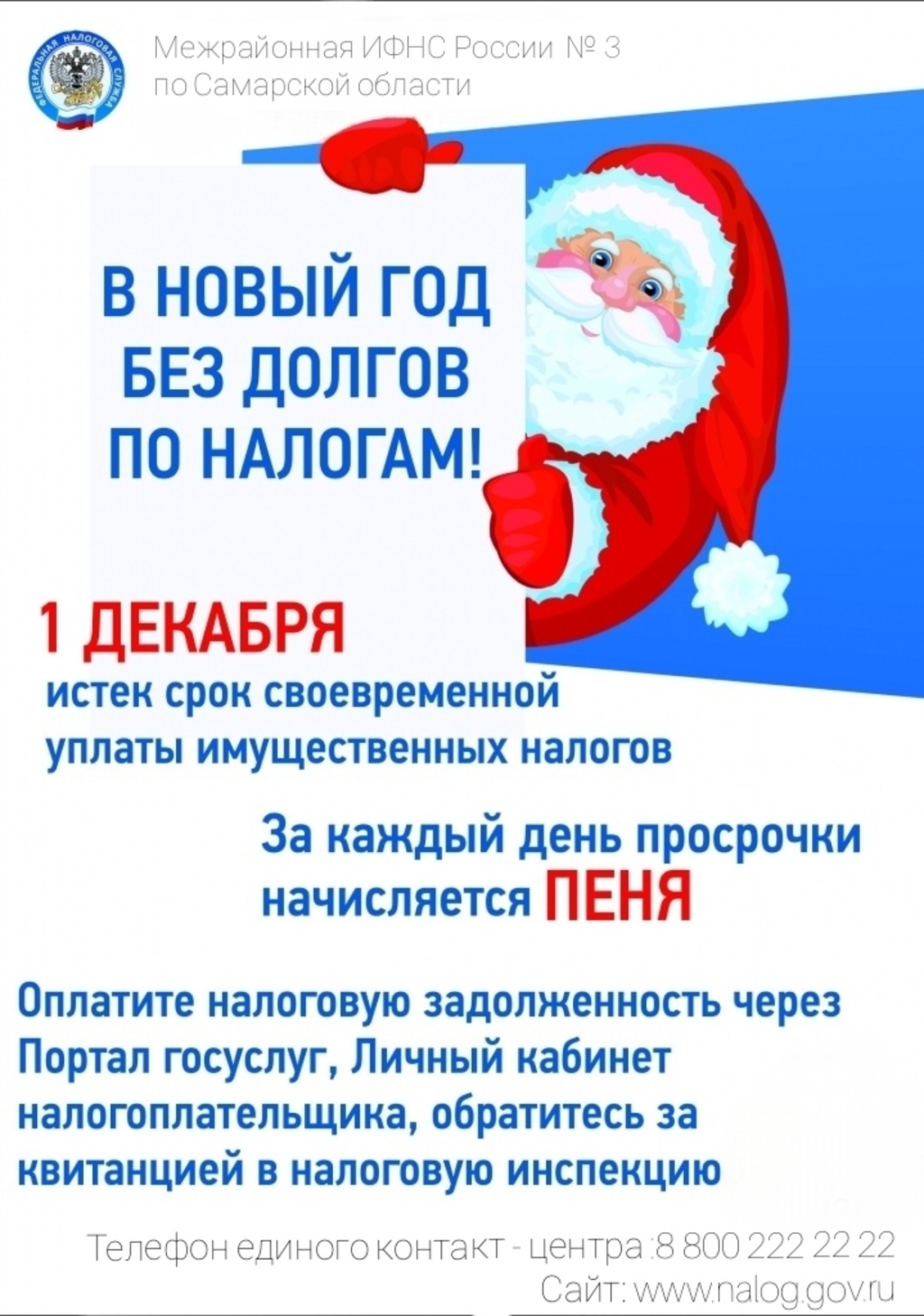 Межрайонная ИФНС России № 3 по Самарской области напоминает, что срок своевременной оплаты имущественных налогов физических лиц истек 1 декабря 2022 года. Неуплаченные налоги стали задолженностью, а не уплатившие их налогоплательщики – должниками. Начиная со 2 декабря, сумма долга ежедневно увеличивается из-за начисления пени в размере 1/300 ставки рефинансирования Центрального банка России.