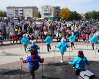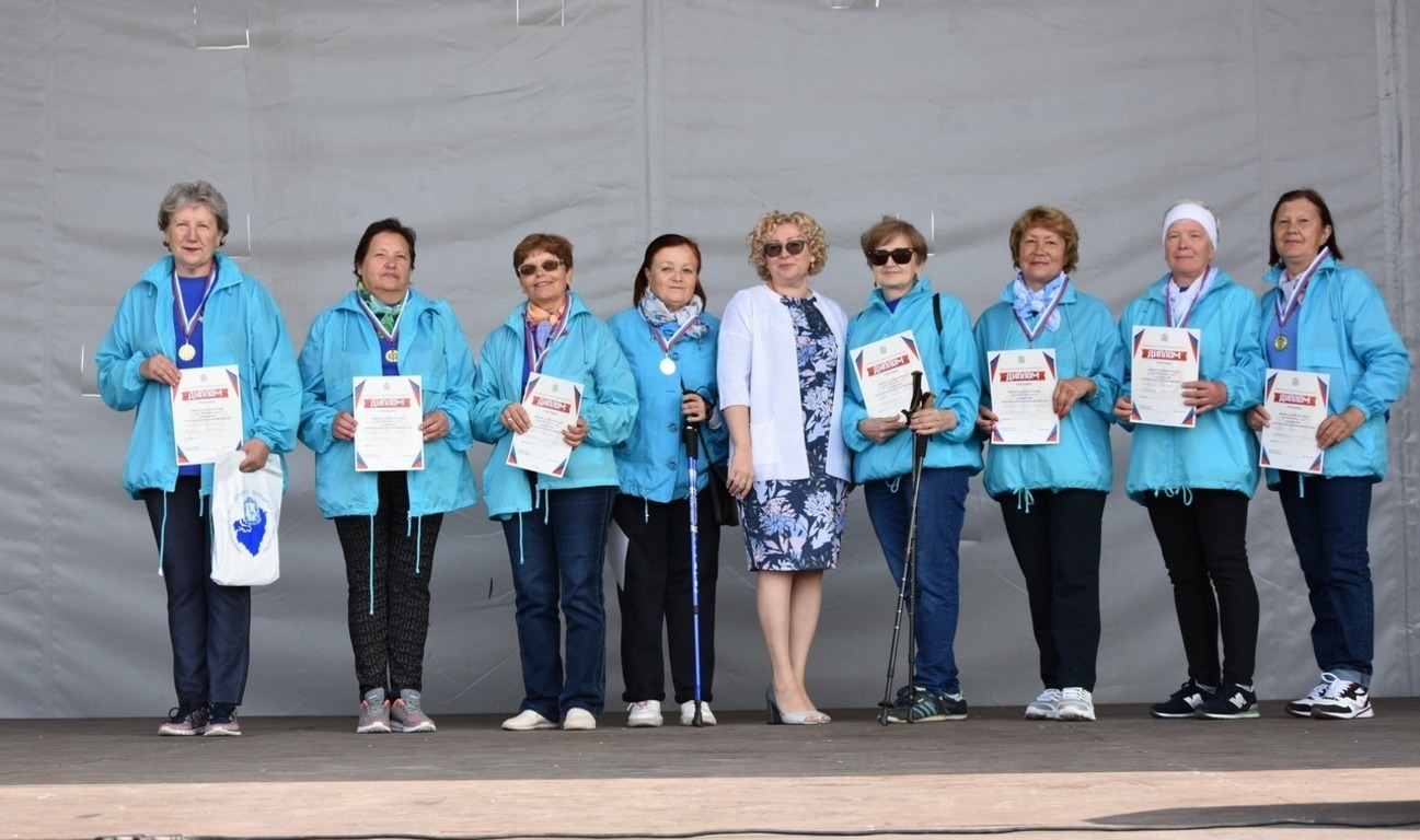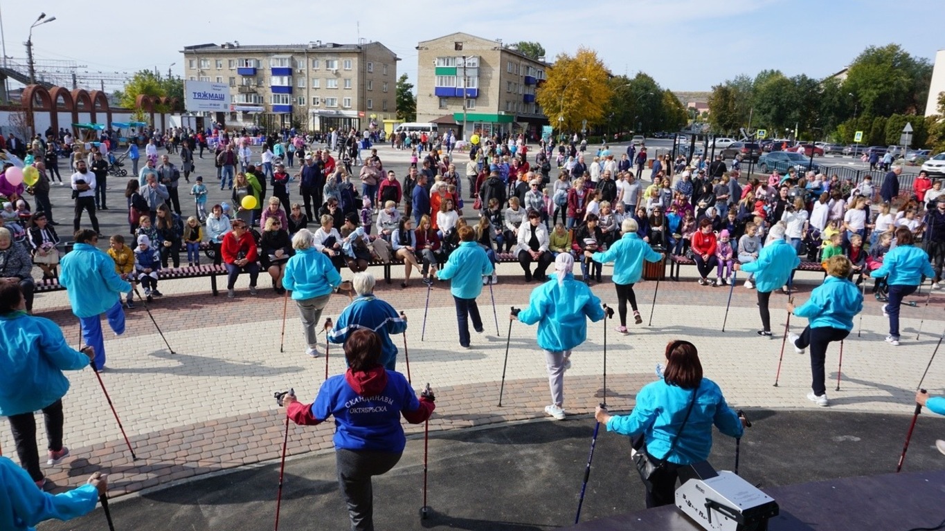 Началось оно с мастер-класс разминки, которую для всех желающих провели участницы клуба «Скандинавы Октябрьска».