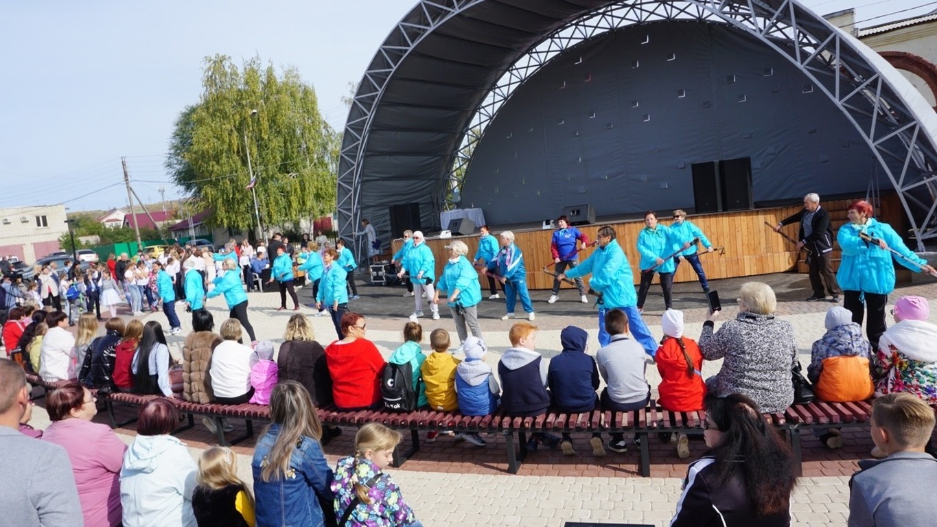 На обновлённой сцене состоялся музыкальный флэш-моб, который провели участники танцевального ансамбля «Эксклюзив», после которого наступила официальная часть мероприятия.