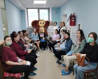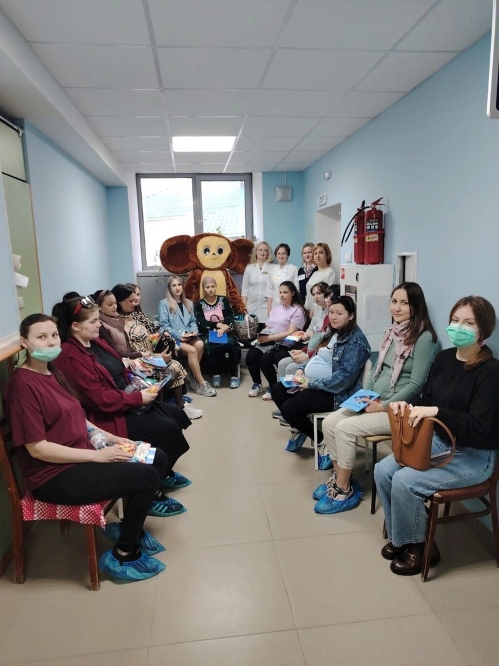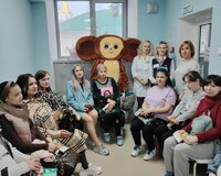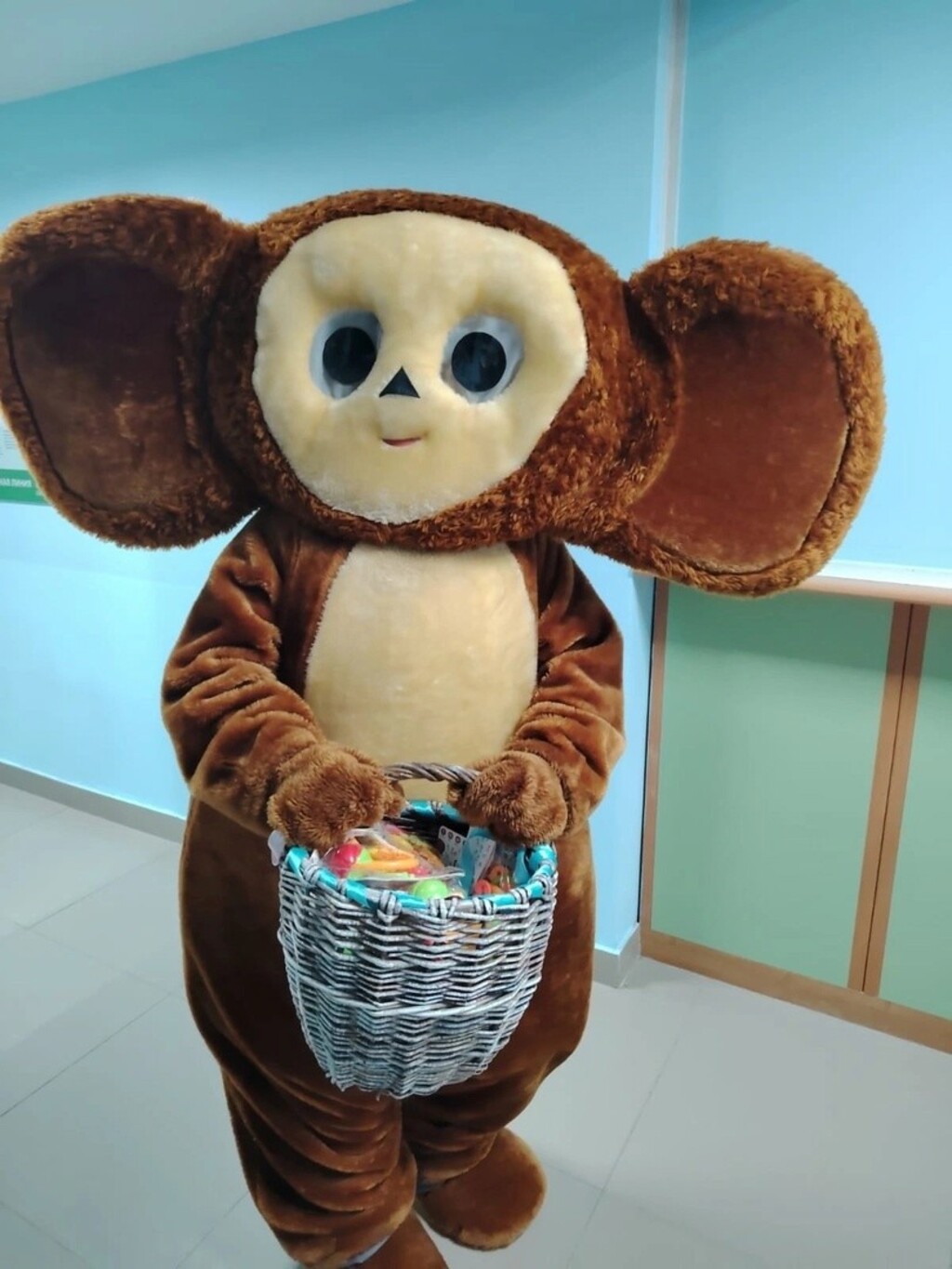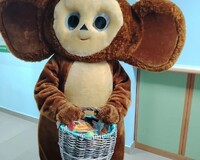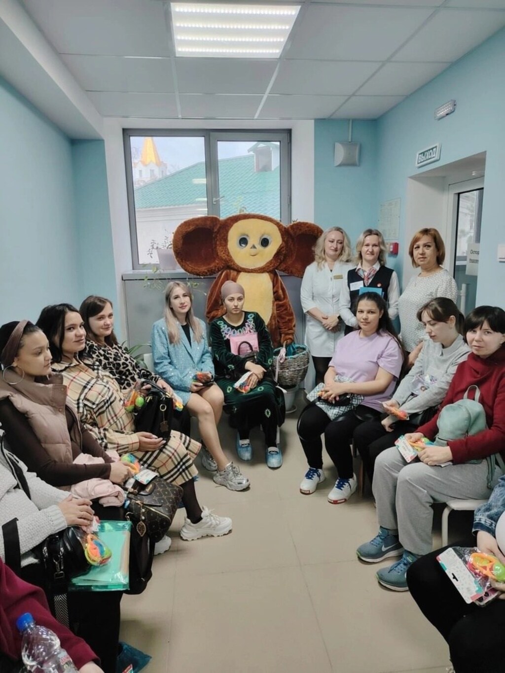 К поздравлением присоединился один из главных героев книги Эдуарда Успенского «Крокодил Гена и его друзья» - улыбчивый Чебурашка и принес в качестве подарка всем будущим мамочкам погремушки. Он пожелал всем здоровья, благополучия, позитивного настроения и детского смеха.