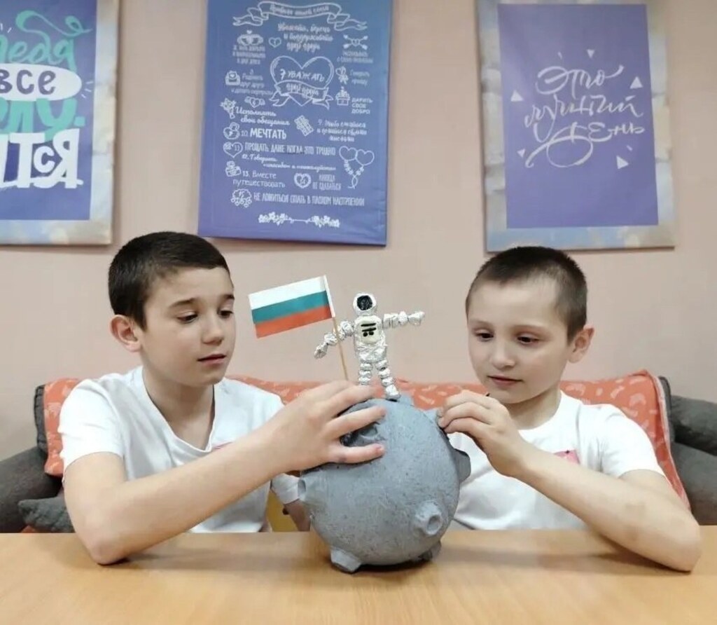 Воспитанники СРЦН Тимур Б. и Артем К. изготовили макет "Российский астронавт на луне" и поделились своей историей о работе: