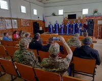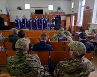 В конце праздничного концерта участницы хора "Радуга" раздали бойцам сладкие презенты.