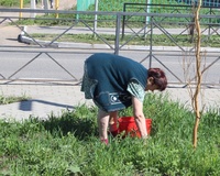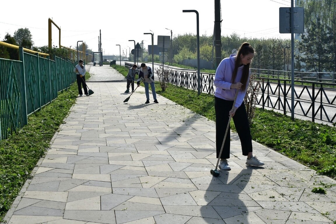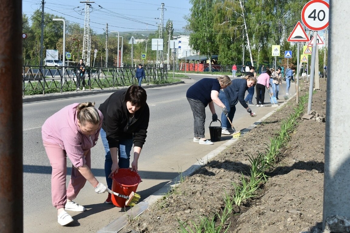Сюда пришли жители окрестных домов, педагоги и ученики расположенной здесь одиннадцатой школы, сотрудники детского сада, работники Службы благоустройства, озеленения, содержания дорог и транспортного обслуживания. Они скосили подросшую траву, побелили бордюры, подмели территорию.