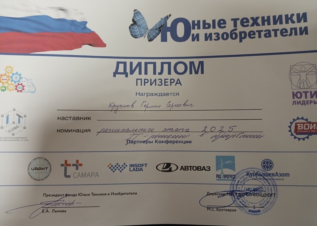 28 апреля ученики Детского мини-технопарка "КВАНТУМ" г.о. Октябрьск Ярусова Мираслава и Круглов Герман приняли участие в финале регионального этапа XII Всероссийской Конференции "Юные Техники и Изобретатели", которая проходила в Самаре, на площадке "Самарского областного центра детско-юношеского технического творчества".