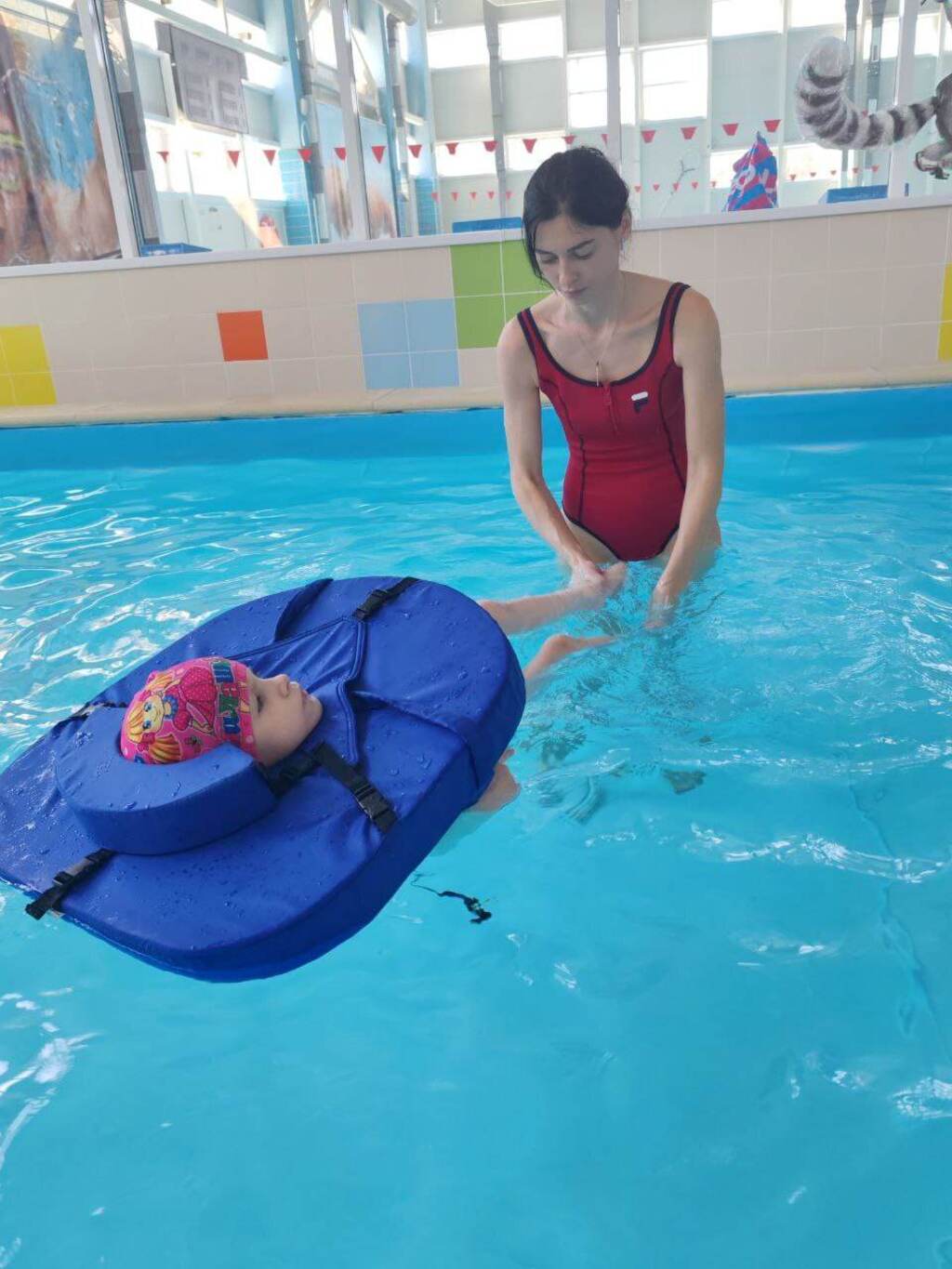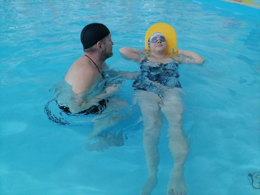 Занятия плаванием, детей с инвалидностью с инструкторами, позволяют в какой-то мере компенсировать утраченные двигательные функции. При занятиях плаванием в работу включаются звенья опорно- двигательного аппарата. Дети при этом учатся держаться на воде, те кто вчера еще боялся воды, пытаются зайти в нее и слушая инструктора, выполняют не сложные упражнения.