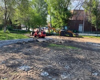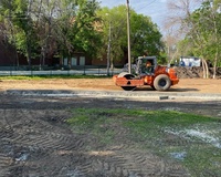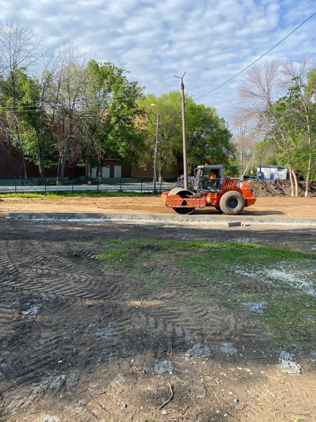 На данный момент выполняются работы по раскопке траншеи под гильзы, укладка, засыпка песком. Произведен завоз материалов. Выполняется планировка территории, уплотнение и подготовка под устройство борта.