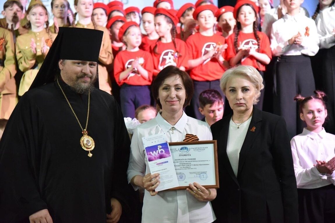 ️Руководитель Западного управления министерства образования Самарской области Гороховицкая Т.Н. и Управляющий Сызранской епархией РПЦ, епископ Сызранский и Шигонский Антоний поздравили всех участников мероприятия с наступающим Днем Победы, вручили Грамоты и призы победителям и призерам Конкурса.
