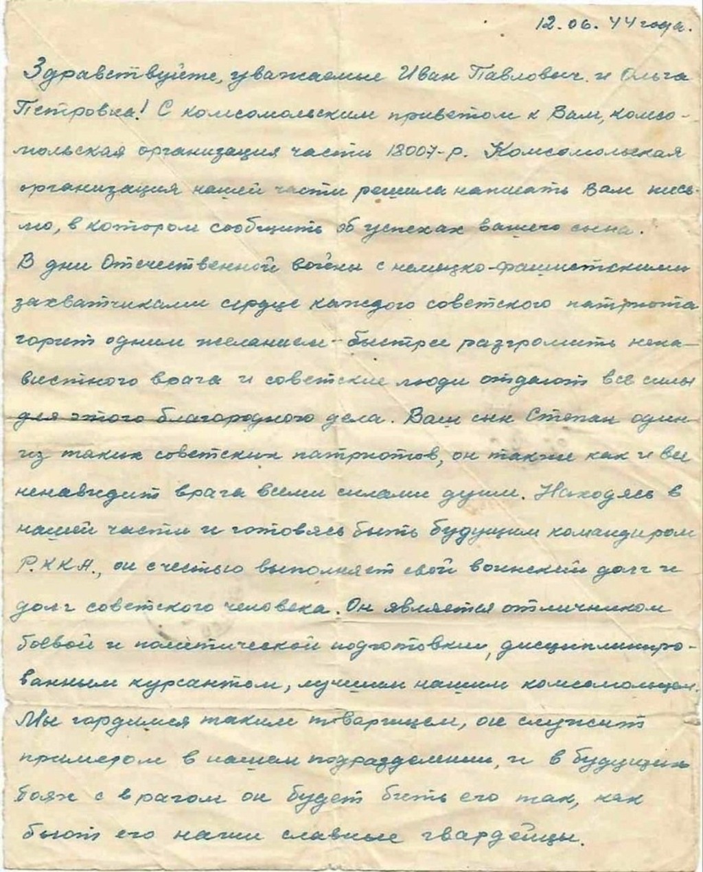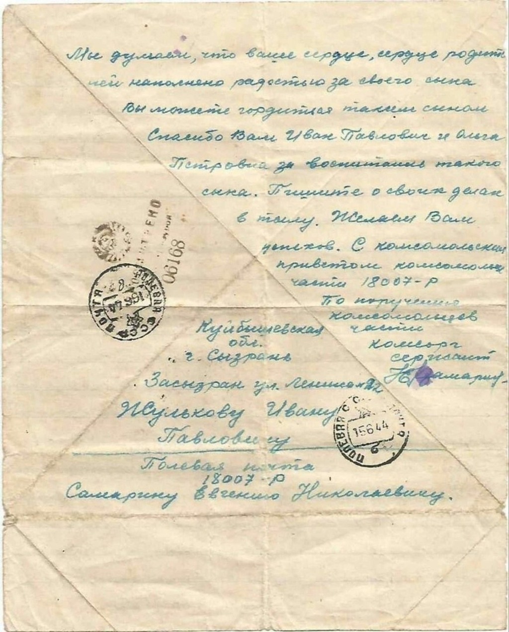 О Жулькове Степане Ивановиче (дедушке мамы) мне удалось узнать немного, но зато сохранилось письмо, адресованное его родителям с фронта.