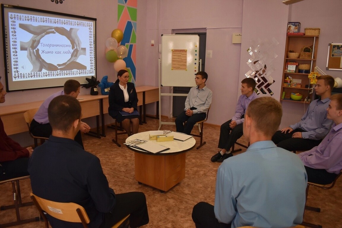 Старшеклассники Специальной школы г. Октябрьск ГКО СУВУ приняли участие в психологическом тренинг-занятии «Толерантность. Жить как люди», в ходе которого ребята обсуждали вопросы межнациональной розни, говорили о причинах и последствиях конфликтов на этой почве, а еще учились быть толерантными.