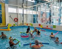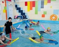 Затем в игровой форме утроили соревнования на воде с использованием специализированного оборудования (нудлы, мячи, тонущие предметы, доски для плавания).