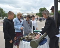 ️На площади в этот день прошёл целый ряд других важных акций. Одной из них стала выставка трофеев, захваченных бойцами Российской Федерации в ходе специальной военной операции. На ней были представлены обломки сбитых вражеских дронов «Байрактар» и «Баба-Яга», украинского производства, различные предметы экипировки и вооружения. Также на выставке были представлены изделия жителей Октябрьска, сделанные в рамках кампаний по сбору гуманитарной помощи – окопные спички и свечи, различные маскировочные сети, костюм «Лешего».
