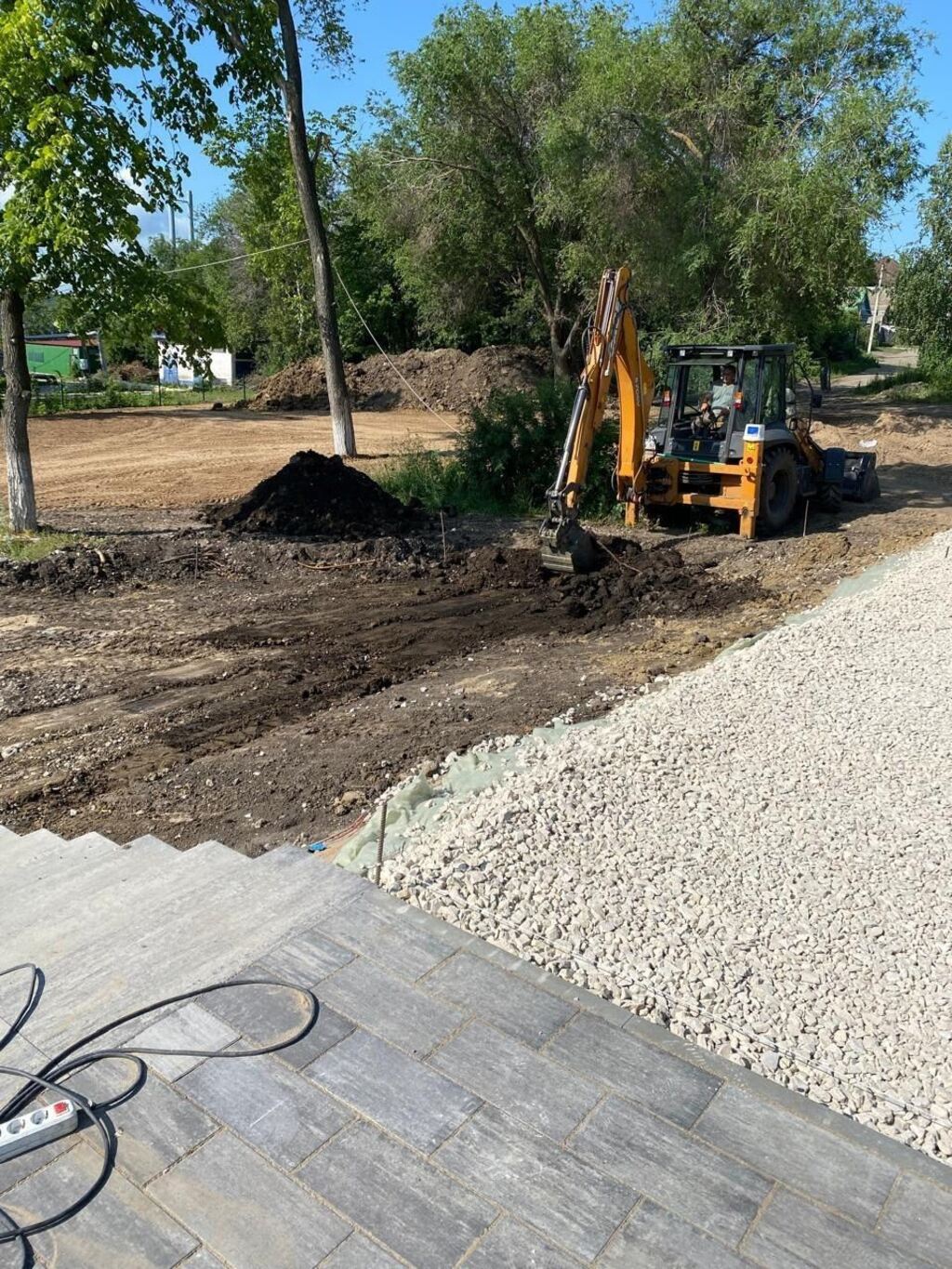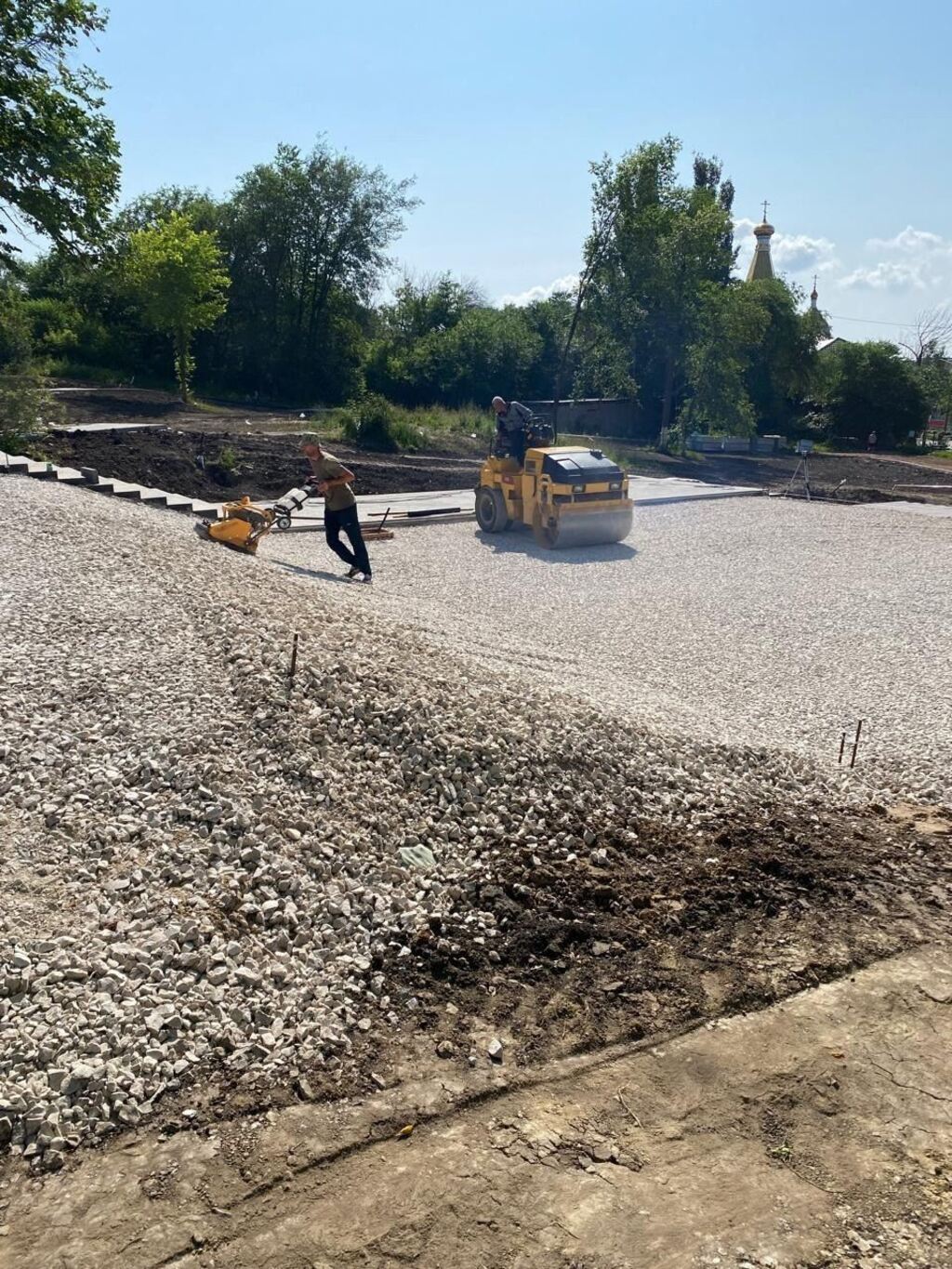 -"Все этапы благоустройства выполняются строго согласно утвержденному графику. Уже осязаемы пешеходные дорожки и центральная аллея. Подготовили основание из бетона под детскую площадку, прокладываем коммуникации, подводим электрику под монтаж опор освещения, продолжаем работы по обустройству техпомещения фонтана"- комментирует руководство ландшафтной компании «БЕРСО».
