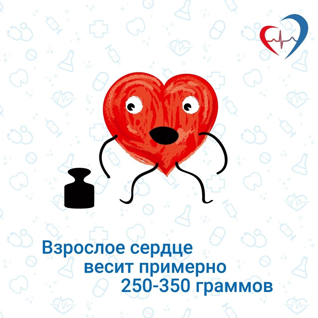 Сердце человека примерно размером с кулак. У взрослых оно весит около 250-350 граммов.