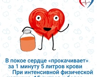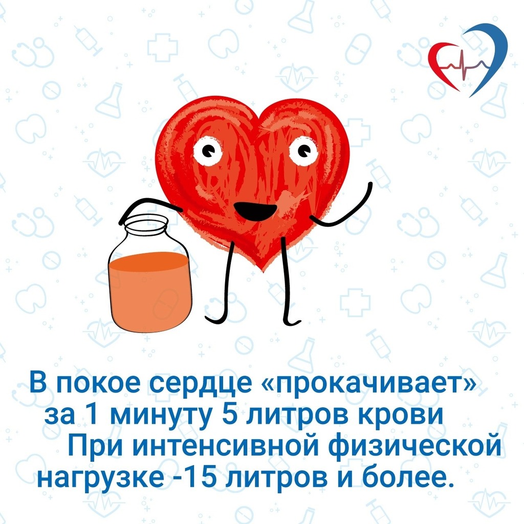 В покое сердце «прокачивает» за 1 минуту 5 литров крови, при интенсивной физической нагрузке -15 литров и более, а в сутки - от 7000 до 10 000 литров крови".
