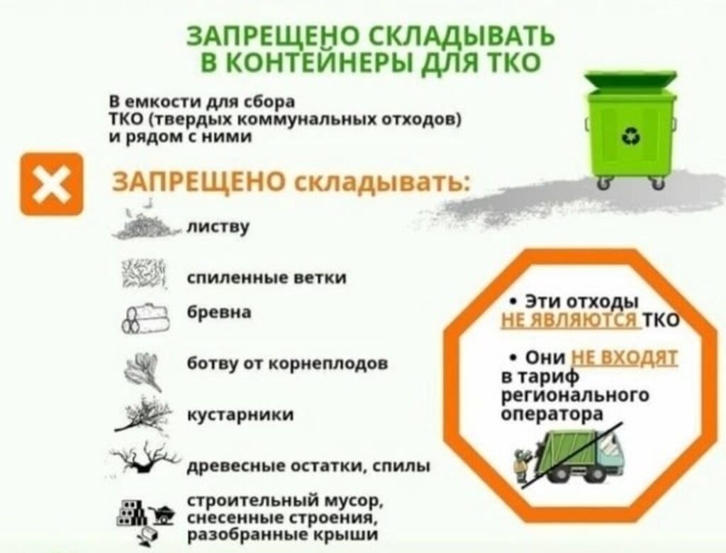 Напоминаем, что складировать ветки, листву и растительные остатки в мусорные баки и рядом с ними ЗАПРЕЩЕНО!