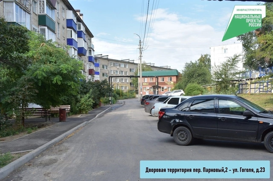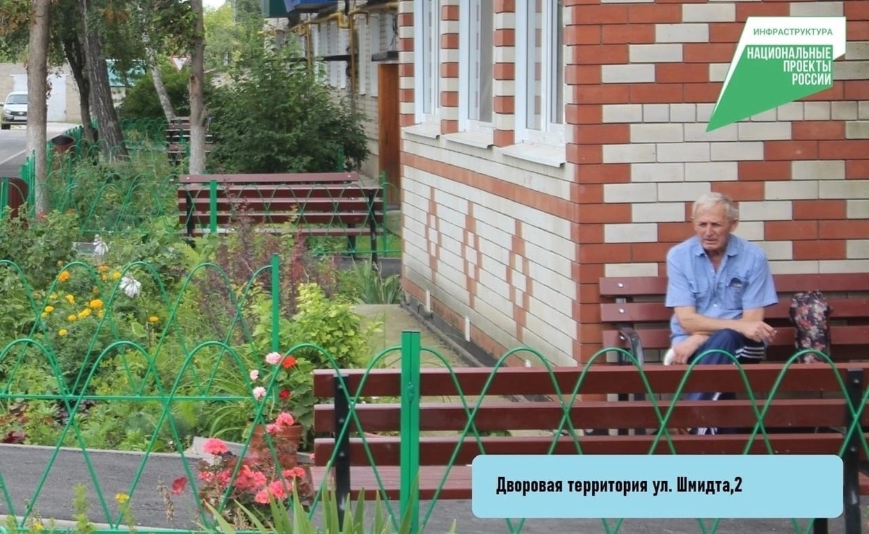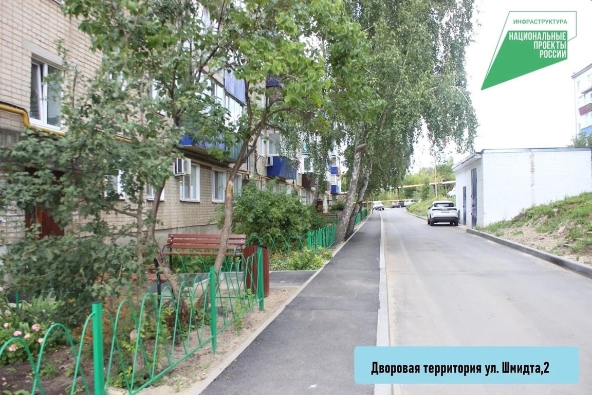 На всех дворовых территориях заасфальтирован проезд, проведено устройство тротуара, установлены скамейки, урны и ограждения палисадников. Кроме этого во дворе дома № 2 по улице Шмидта