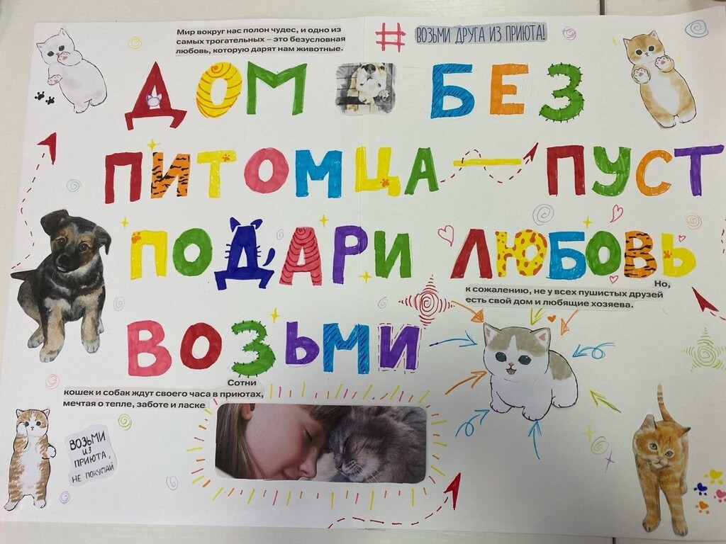 К Акции «Носики Первых» и сети "Четыре Лапы" присоединилось местное отделение "Движения Первых". Активисты Движения нарисовали плакат о том, как важно заботиться о наших братьях меньших, а также объявляют сбор. Все собранные корма и вещи отправятся к тем, кто организует приюты и передержки для животных