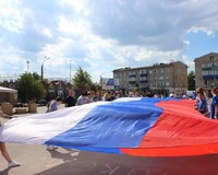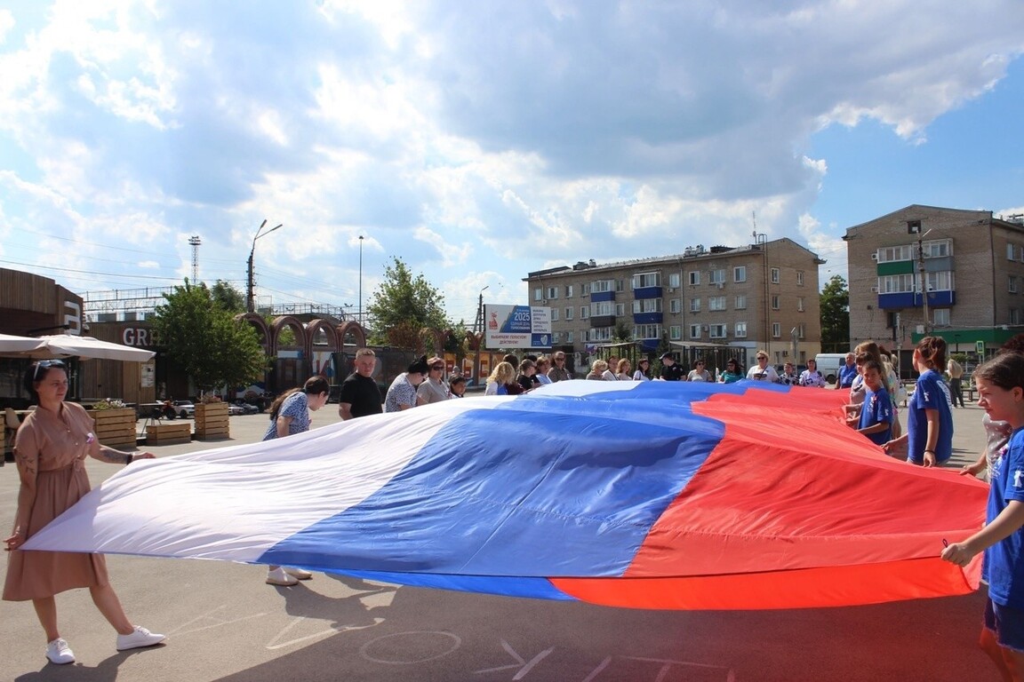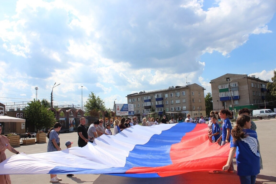 Участники акции, в числе которых были сотрудники учреждений и организаций городского округа, представители общественных организаций, волонтёры, собравшись вместе на площади, растянули огромный российский триколор, чтобы выразить свою любовь к Родине и гордость за её историю.