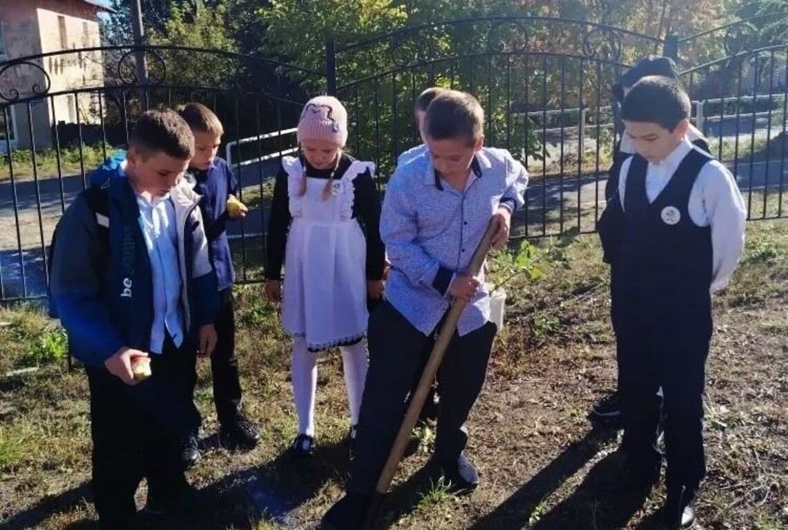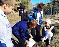 Под руководством классного руководителя Томпишевой Светланы Геннадьевны дети с огромным удовольствием посадили кустарники в школьном саду.