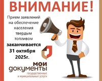 Прием заявлений на обеспечение населения твердым топливом ЗАКАНЧИВАЕТСЯ 31 октября 2025г.