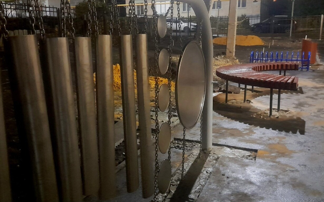 В рамках реализации проекта уже уложены пешеходные дорожки, установлен забор и ворота, а также появились малые архитектурные формы.