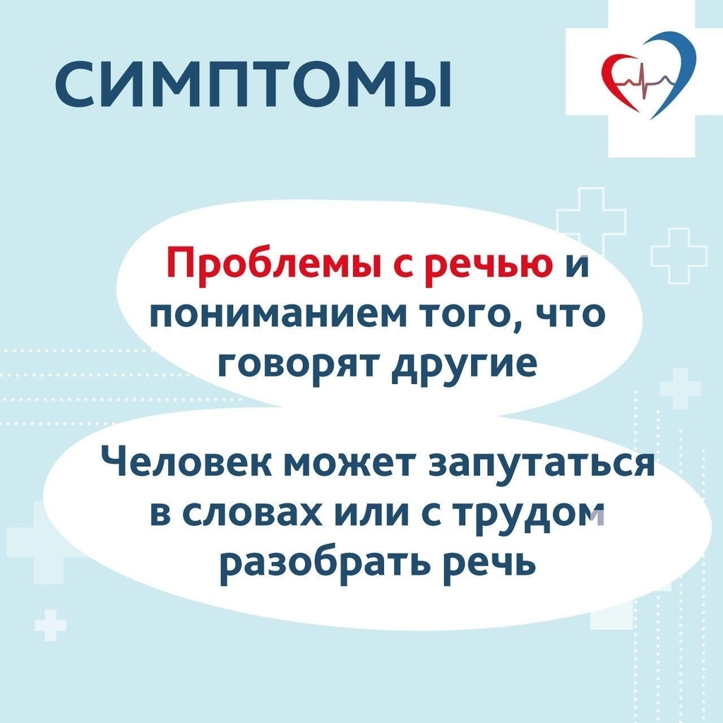 У больного нарушена мимика, уголки рта неравномерно опущены, «кривая» улыбка. Ослаблена рука, нога. Есть проблемы с речью.