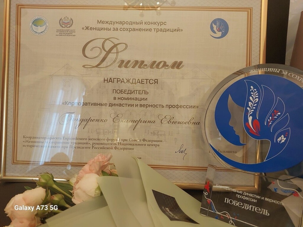 Поздравляем Екатерину Бондаренко с заслуженной победой на Международном конкурсе "Женщины за сохранение традиций"! Получение диплома победителя в номинации "Корпоративные династии и верность профессии" является признанием её значительных заслуг и преданности своему делу.