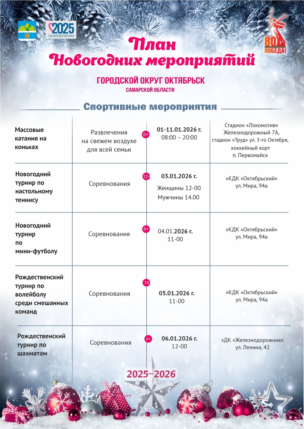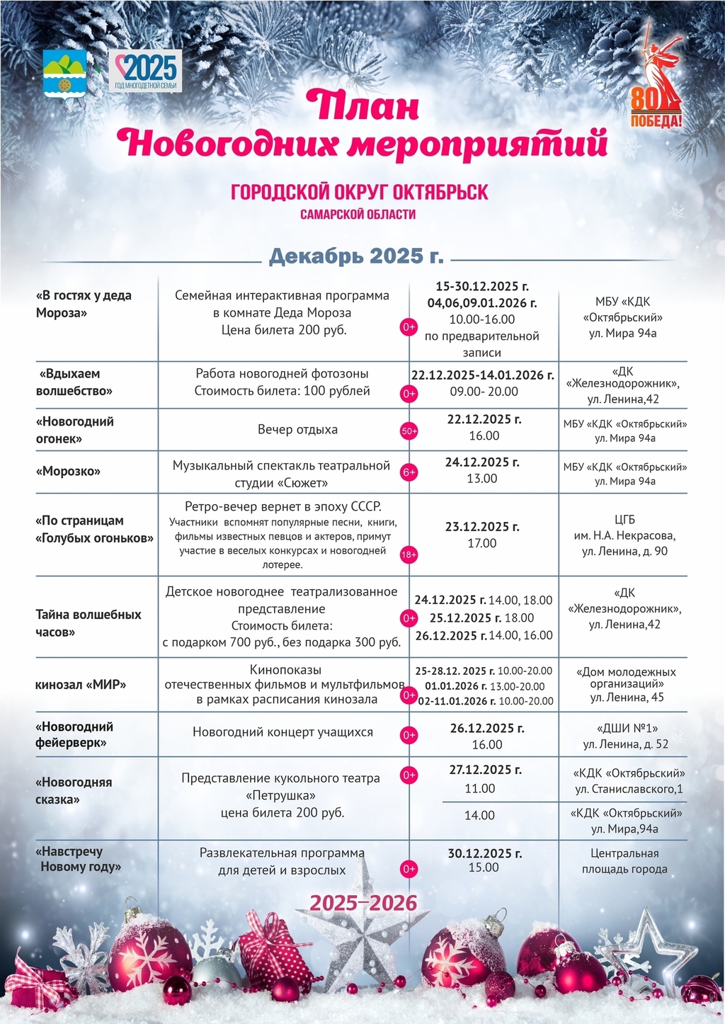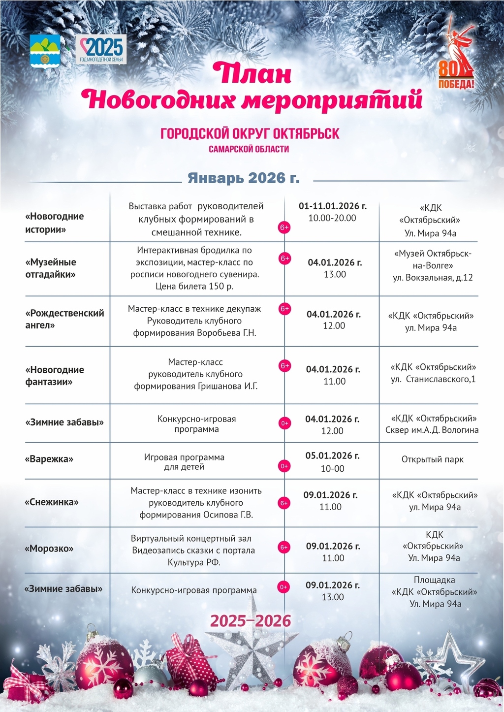 План новогодних мероприятий Представляем вашему вниманию план новогодних мероприятий. Проведите новогодние каникулы вместе с нами!