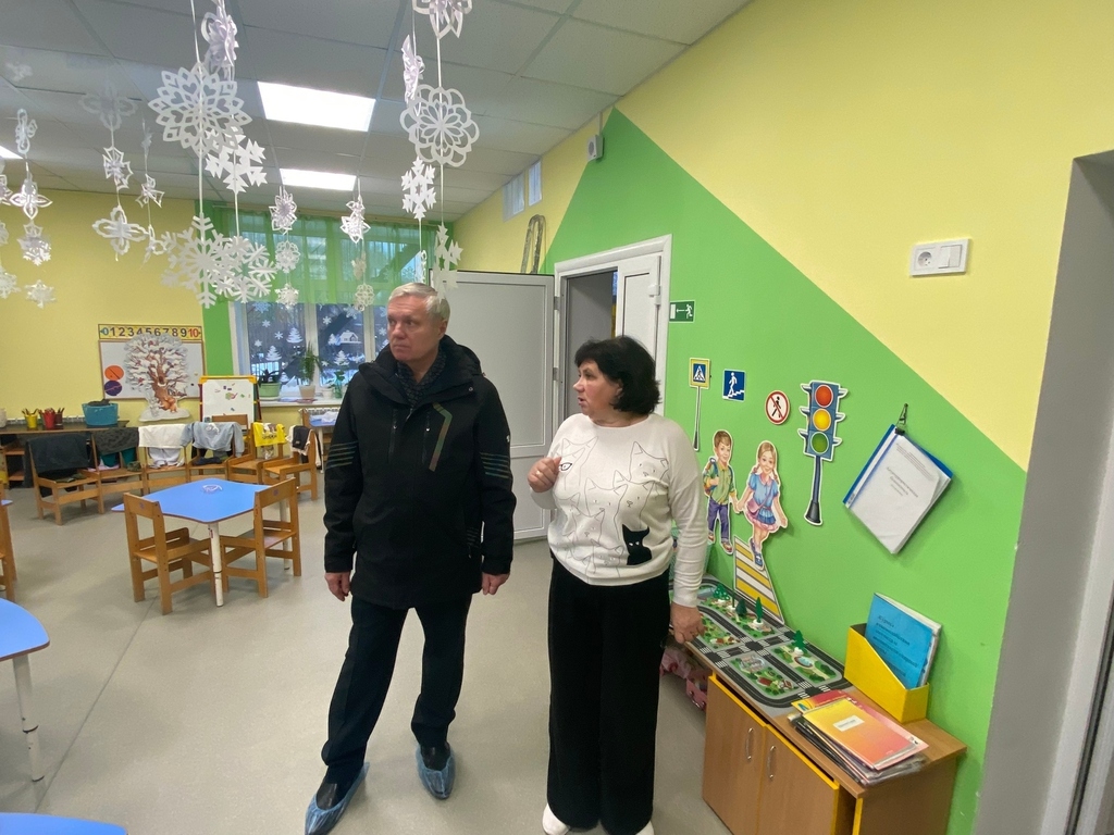 В.В. Ревин оценил, как после капитального ремонта детского сада изменились условия для детей и педагогов. Заведующая детским садом провела экскурсию по дошкольному образовательному учреждению. Осмотрели игровые комнаты, музыкальный зал, спальные комнаты. В.В. Ревин поинтересовался постановкой учебно-воспитательного процесса, количеством обучающихся воспитанников, состоянием температурного режима.