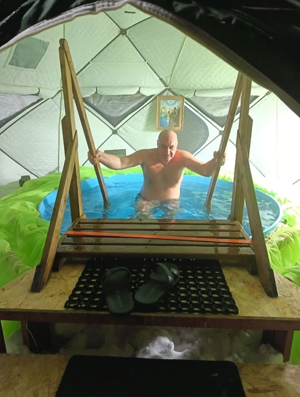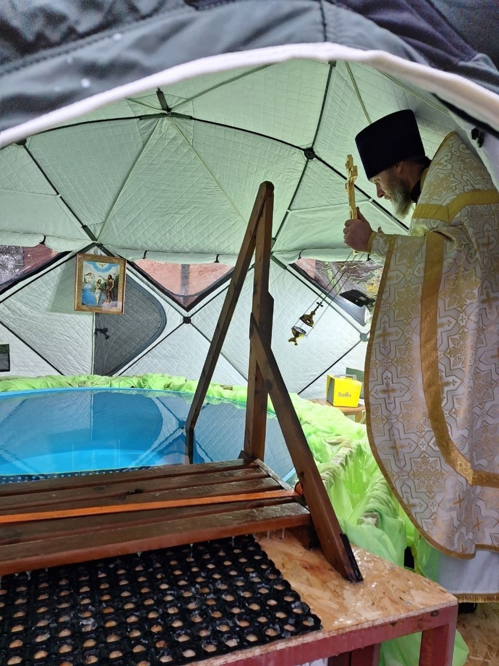 Жители могли набрать освященной воды, а самые смелые окунулусь в купель. После крещенских купаний все желающие смогли согреться чашечкой горячего чая.