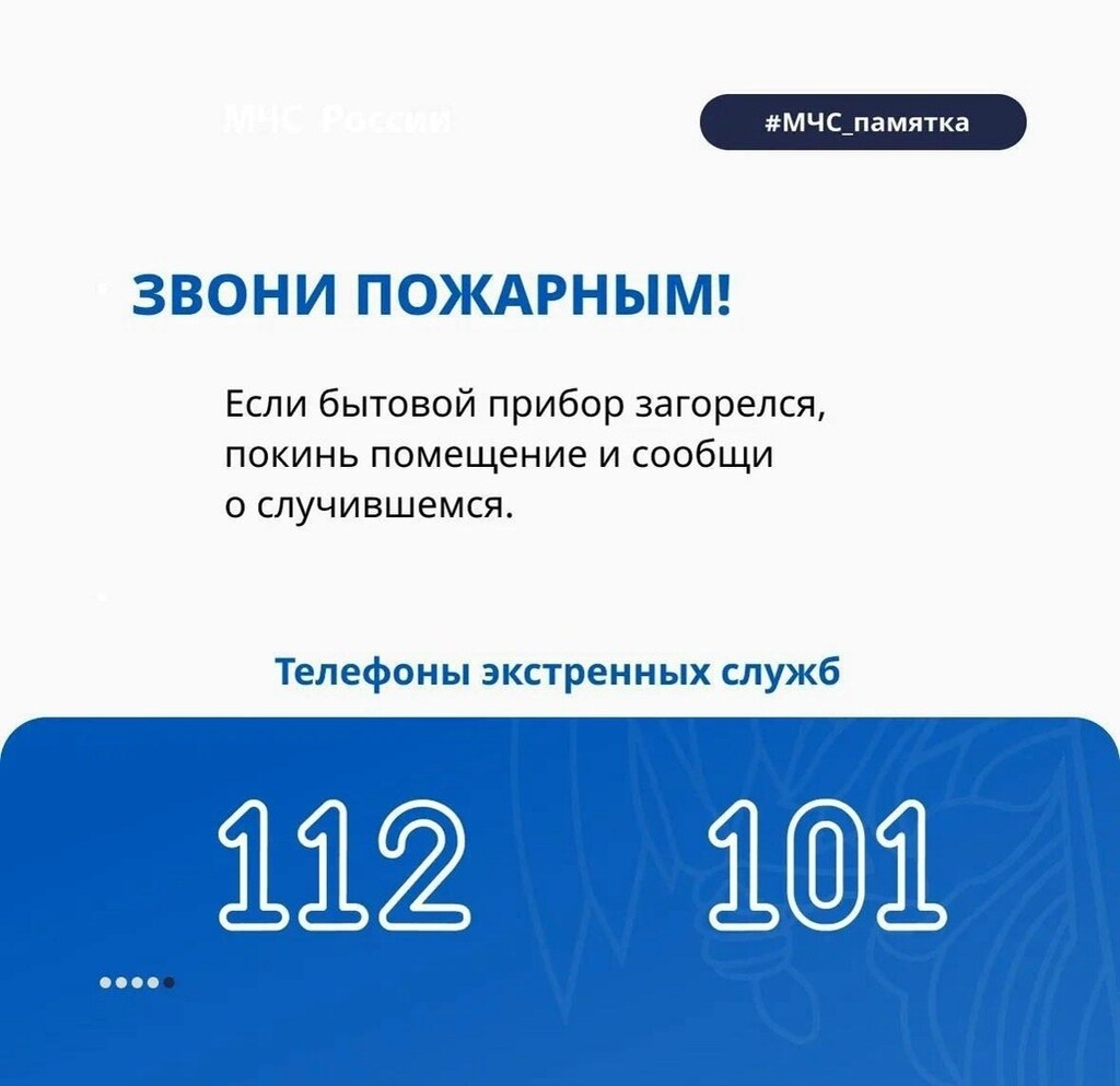 В случае обнаружения пожара, открытого огня или дыма необходимо немедленно сообщить в пожарную охрану по номеру «101» или «112».