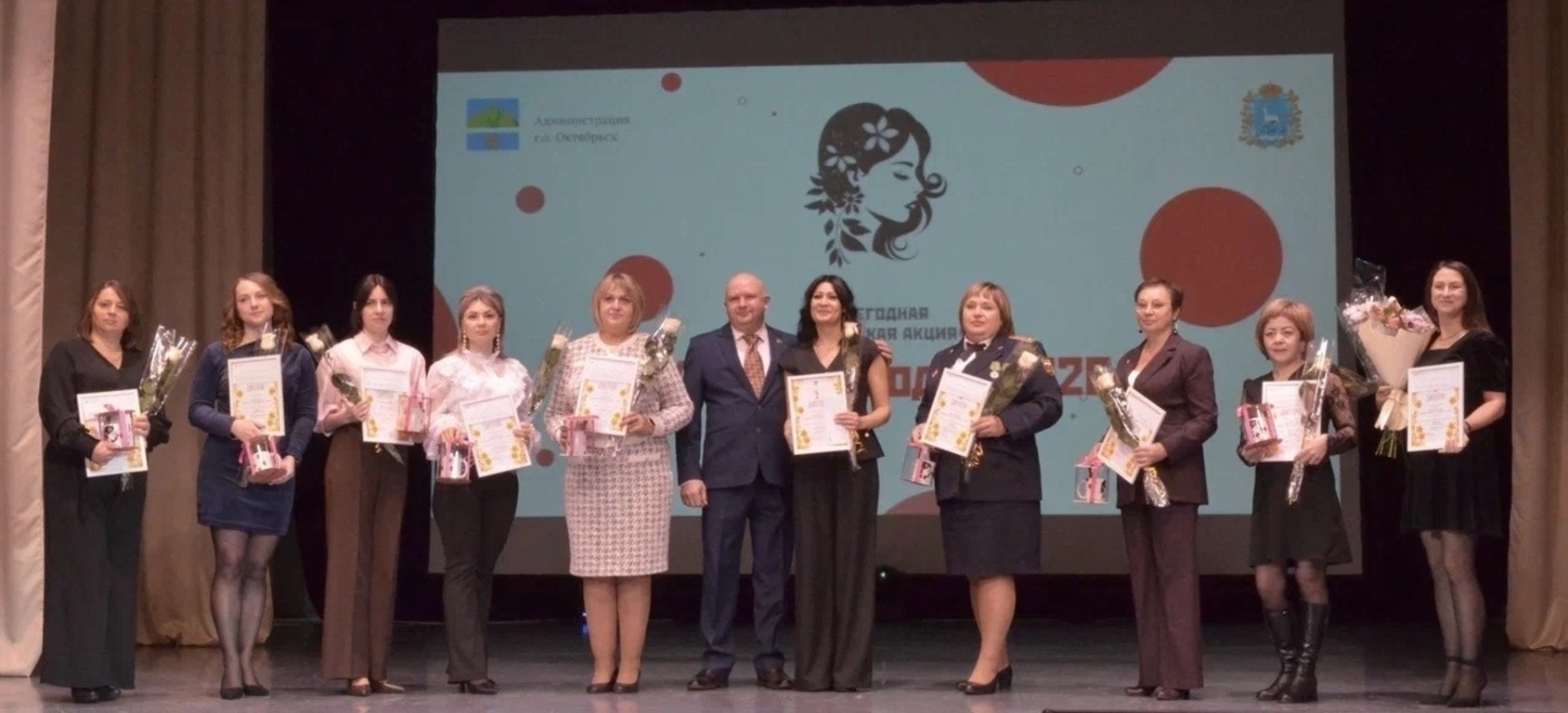 В рамках праздничного мероприятия состоялось подведение итогов традиционной ежегодной городской акции «Женщина года-2026». Торжественную церемонию награждения победителей акции открыл Глава г. о. Октябрьск Владимир Ревин.