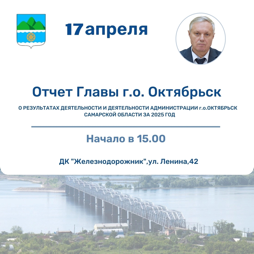 Приглашаем Вас на отчет Главы городского округа Октябрьск В. В. Ревина о результатах деятельности и деятельности Администрации г.о. Октябрьск Самарской области за 2025 год.
