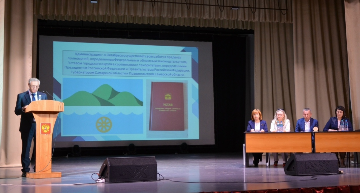 Глава г. о. Октябрьск Владимир Викторович Ревин представил отчёт о результатах деятельности и деятельности Администрации городского округа перед депутатами Думы г.о. Октябрьск и городской общественностью.
