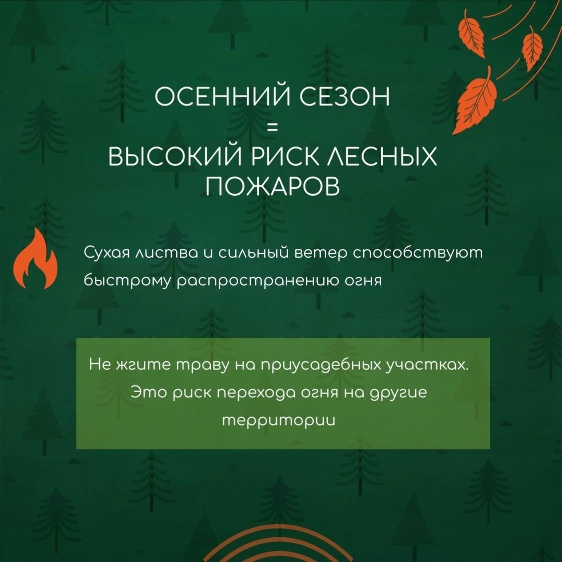 ️Будьте внимательны на дачных участках. Не жгите траву! Огонь может не только перейти в лес, но и нанести ущерб здоровью и жизни людей.